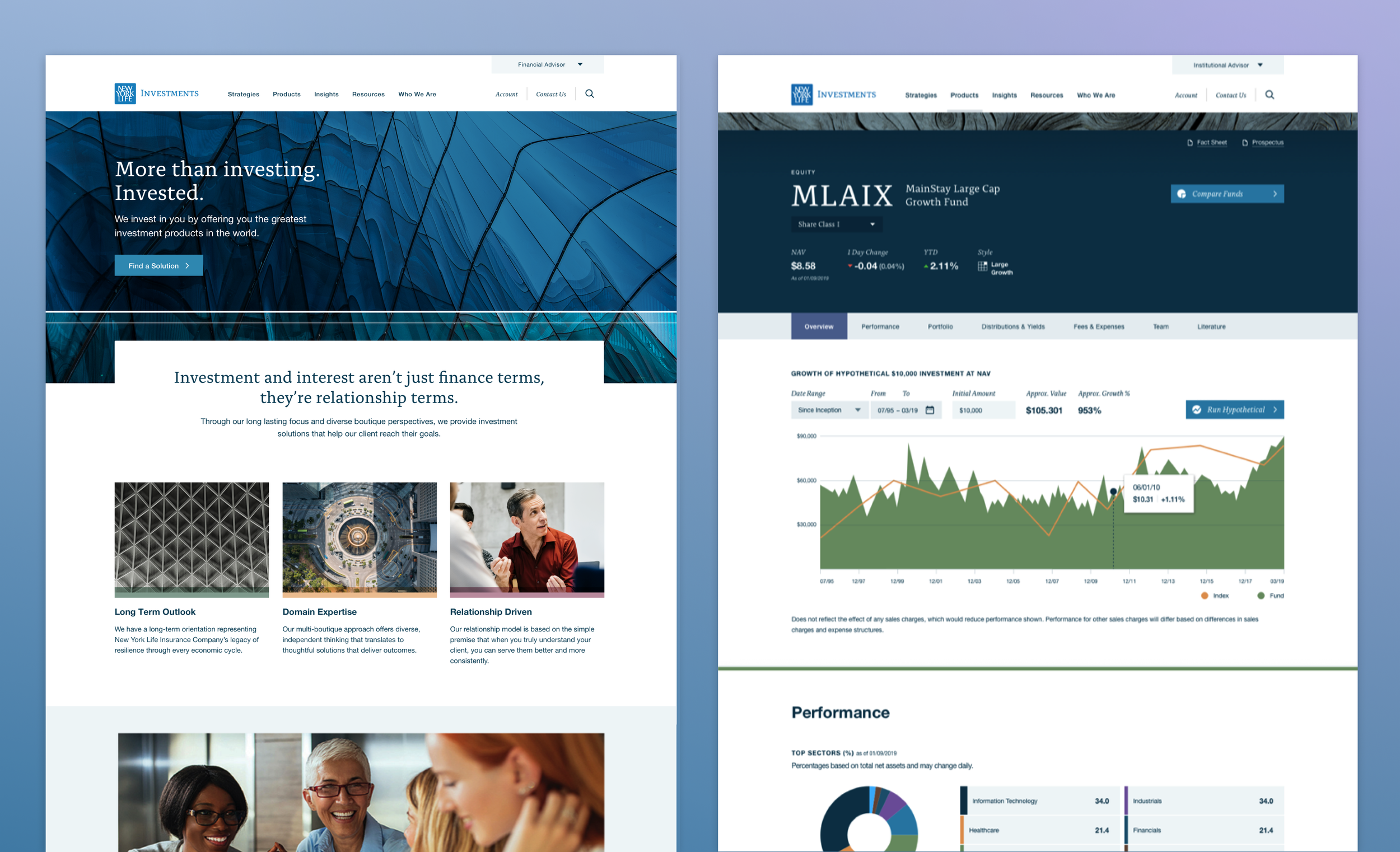 I led a team to deliver a complex new website for NYL Investments. The site presents extensive, dynamic data on their financial products and provides financial modeling tools. The site meets FINRA regulatory requirements, activates a new brand, supports a regular cadence of marketing campaigns, and qualifies sales leads.